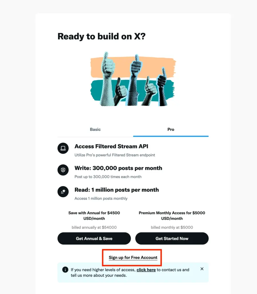 下記の画面に遷移したら、下の「Sign up for Free Account」をクリックする。